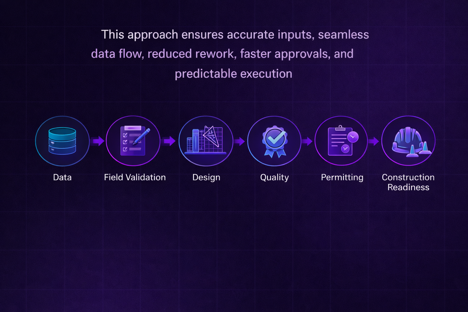 Atlantis Intelligence delivers end-to-end fiber engineering by integrating design, fielding, permitting, and construction alignment into a single accountable model—ensuring faster deployment, reduced rework, and predictable outcomes.